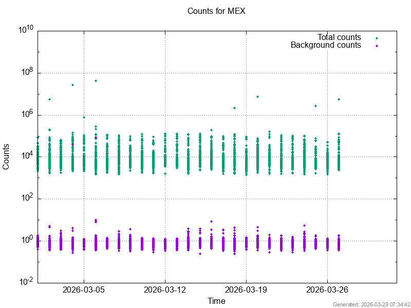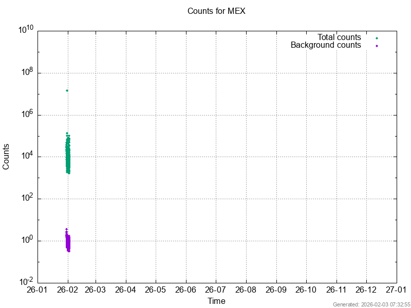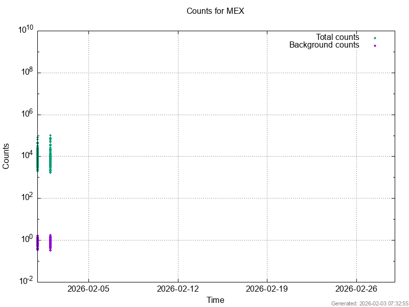 The data files contain time series of the background counts recorded by the IMA sensor on ASPERA-3 and -4. The background counts may be considered as a sum of environmental noise (e.g. high energy particles or ultraviolet photon flux), instrumental noise (e.g. crosstalks from electronics), data processing errors, and other unknown effects.